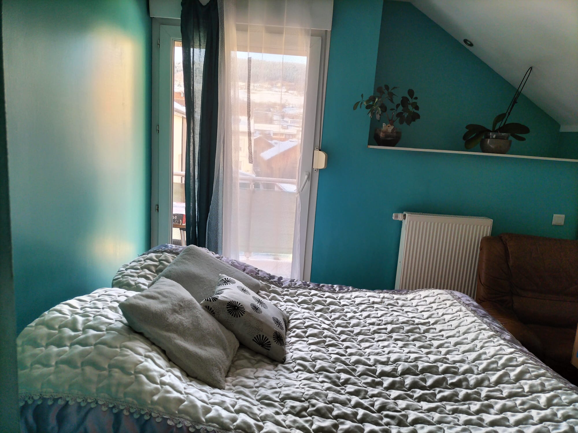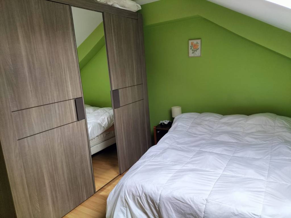 Appartement de 5 pièces, avec balcon, situé au premier étage d’une maison individuelle. Il dispose de 3 chambres doubles (lits doubles taille standard), d’un salon-séjour avec cuisine offrant un canapé convertible, ainsi que d’une salle de bains avec baignoire. Capacité totale de 8 personnes.